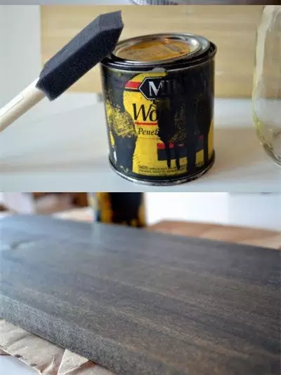 準(zhǔn)備好幾個(gè)罐頭瓶、一塊木板、刷木板顏色用的漆、固定罐頭的鐵環(huán)。